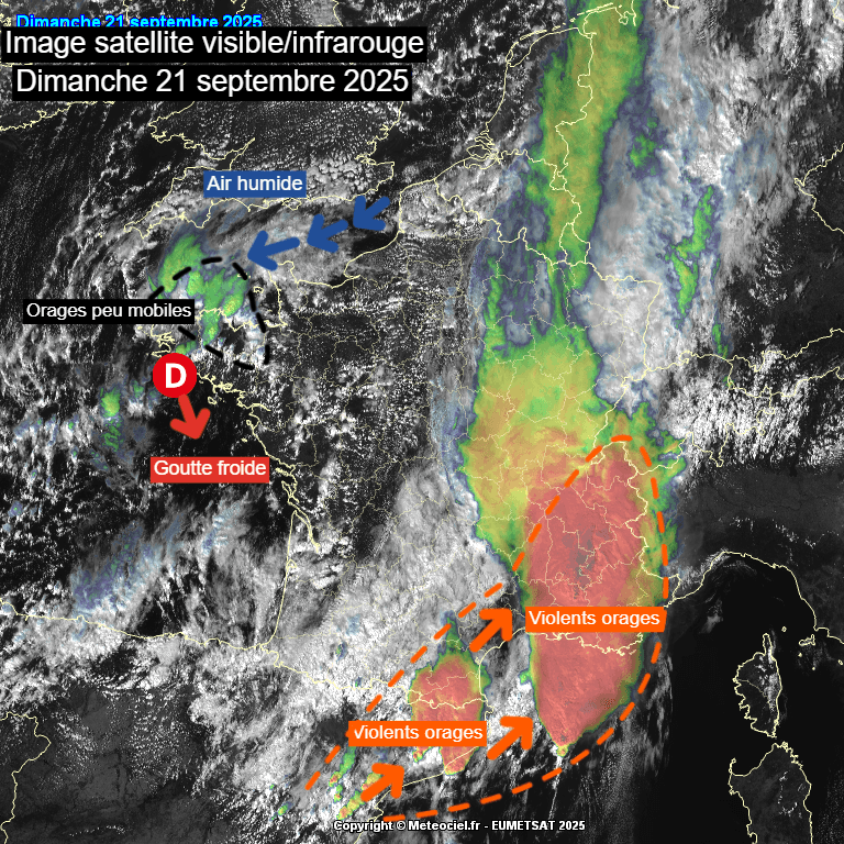 Situation atmosphérique du 21 septembre 2025 sur la France – Image satellite via meteociel.fr