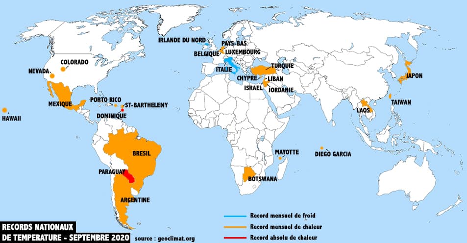 Records nationaux de températures (chaleur / fraîcheur) battus au cours du mois de septembre 2020