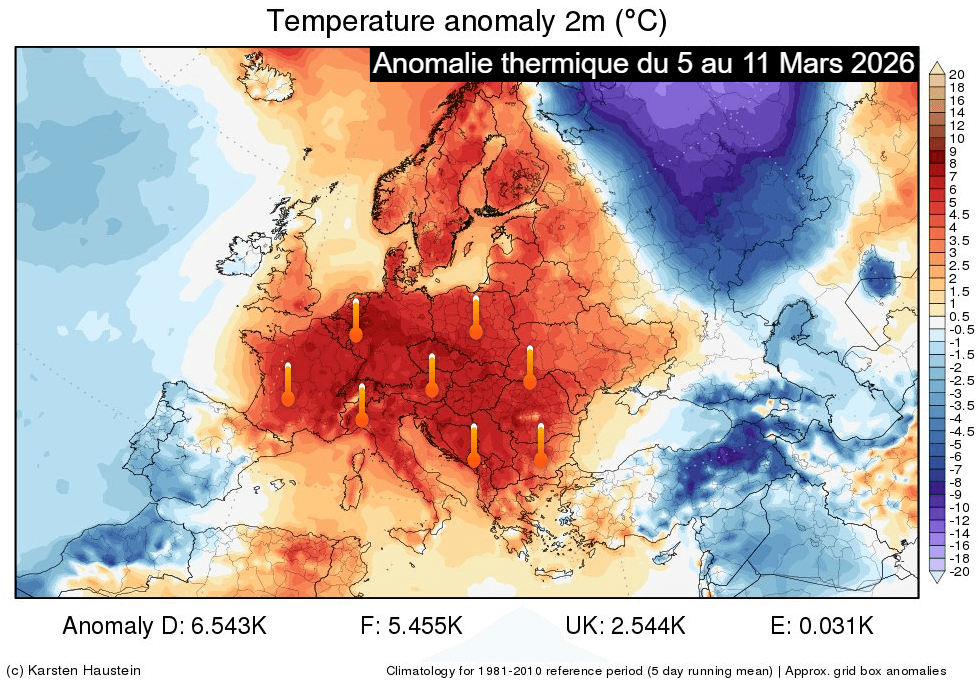 Anomalie thermique en Europe du 5 au 11 mars 2026 - Karsten Haustein