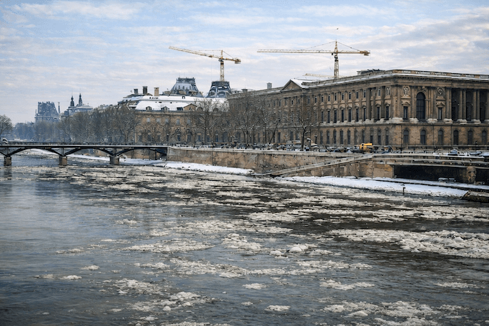 À la fin de la vague de froid, la Seine charrie des glaçons, mais elle ne gèle pas entièrement. C'est d'ailleurs la dernière fois que l'on voit des glaçons parcourir la Seine, et plus aucune autre vague de froid ne sera capable de produire ce spectacle qui paraîtrait aujourd'hui totalement surréaliste. photo meteo-paris.com.