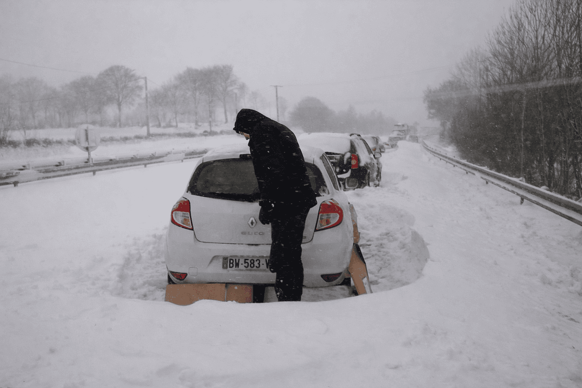 Le 12 mars, de fortes chutes de neige paralysent les régions au nord de la Loire. Des milliers d’automobilistes se retrouvent piégés par des congères de plus de 3 mètres, notamment en Normandie, en Picardie et dans le Nord-Pas-de-Calais.