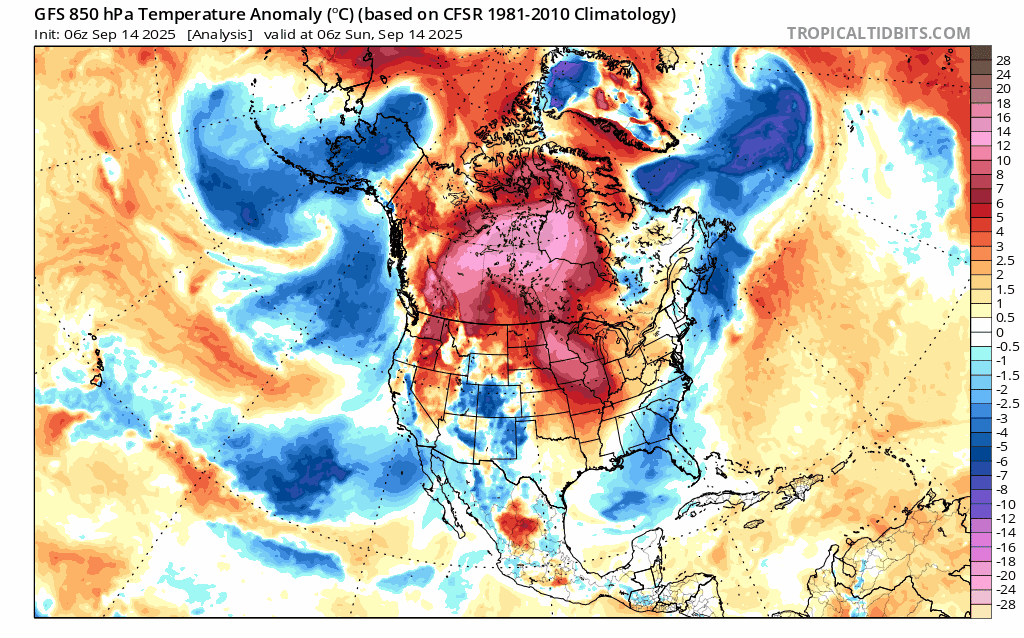 Anomalie thermique de la masse d'air du 14 au 26 septembre 2025 - tropicaltidbits.com