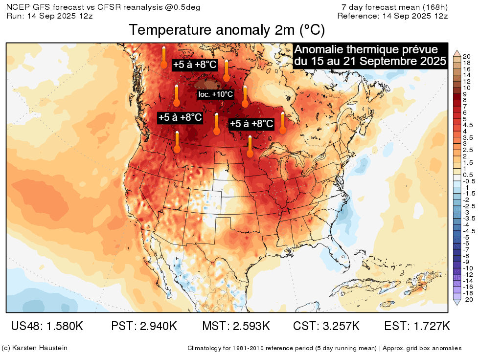Anomalie thermique prévue en Amérique du Nord du 15 au 21 septembre 2025 - Karsten Haustein