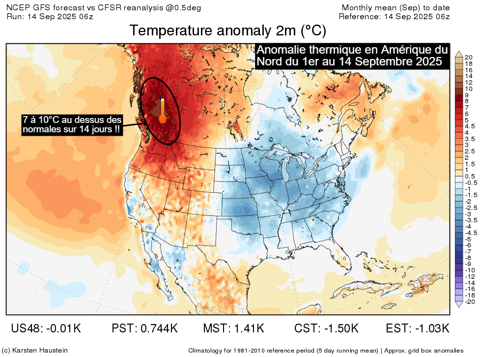 Anomalie thermique en Amérique du Nord du 1er au 14 septembre 2025 - Karsten Haustein