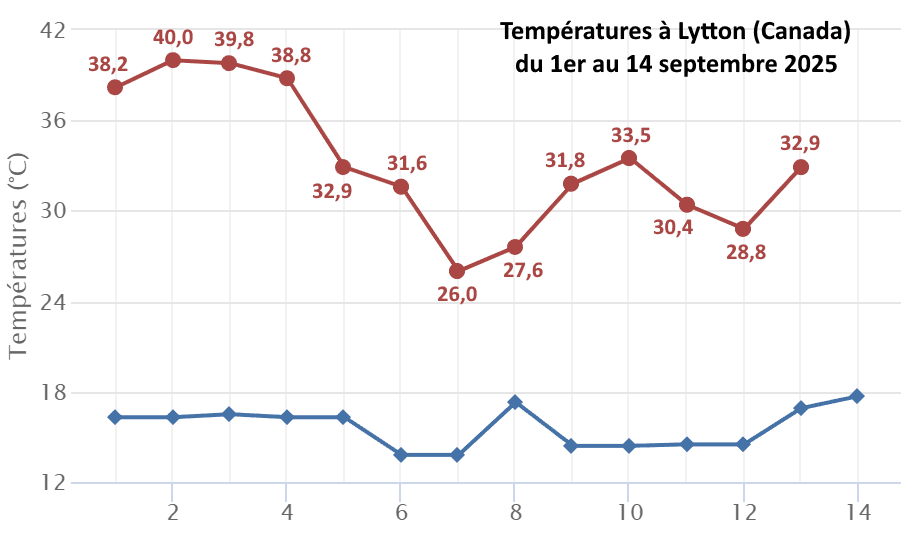 Températures mesurées à Lytton en Colombie-Britannique (Canada) du 1er au 14 septembre 2025 - infoclimat.fr