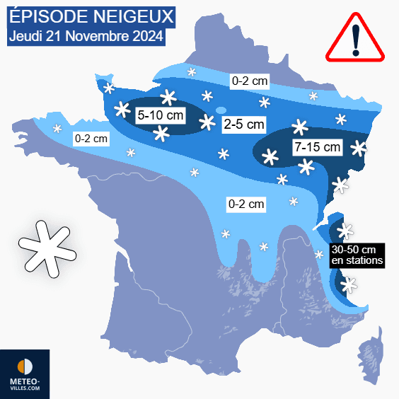 Épaisseurs de neige du jeudi 21 novembre 2024 - Météo Villes