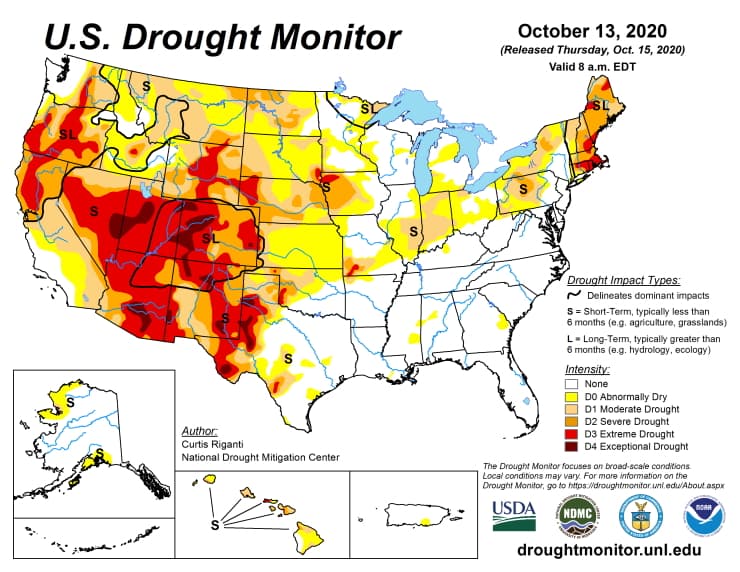 Sécheresse des sols aux États-Unis au 13 octobre 2020 - via NOAA