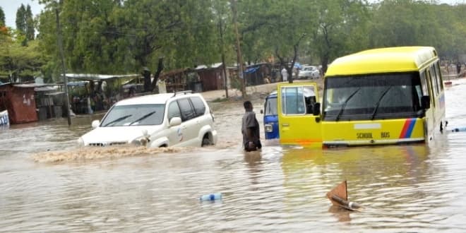 Route Shekilango inondée dans la région de Dar es Salaam (Tanzanie) ce 14 octobre 2020 - photo Miraji Msala