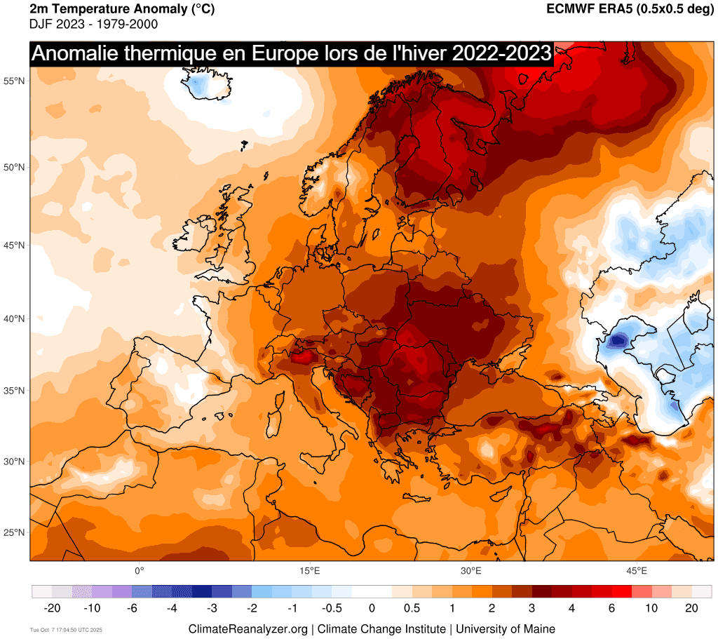 Anomalie thermique durant l'hiver 2022-2023 en Europe - climatereanalyzer.org
