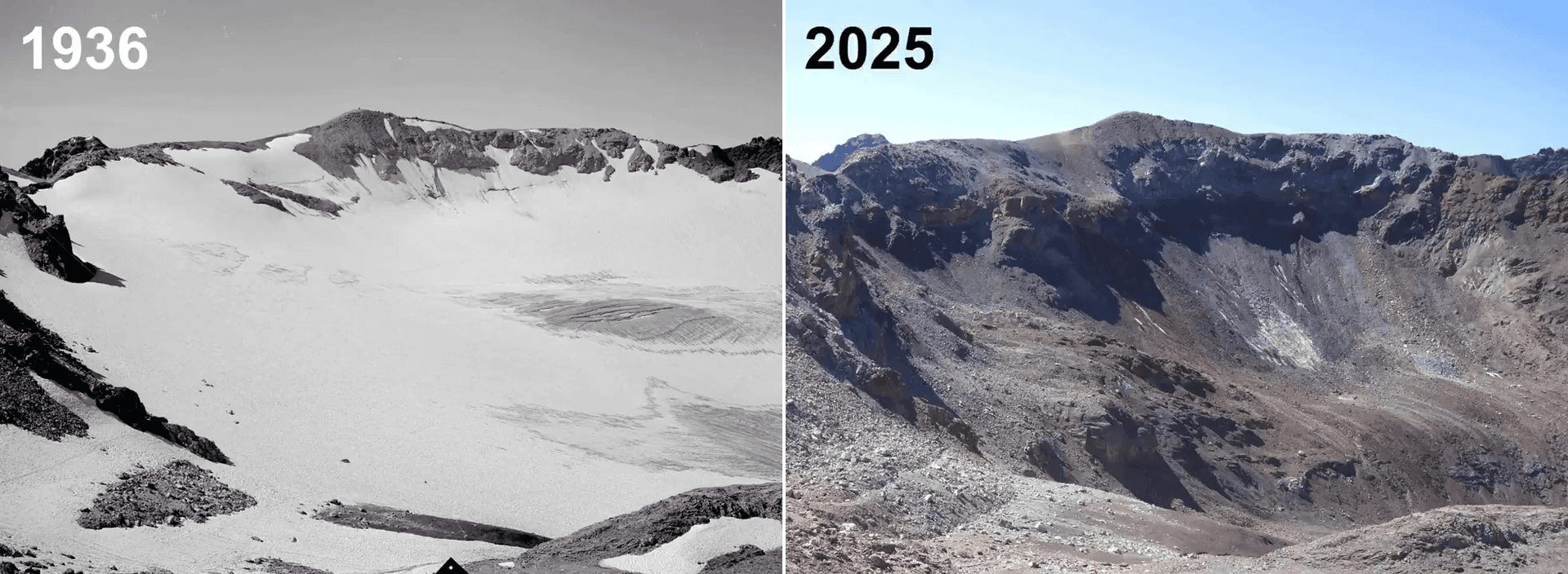 Disparition totale du glacier Vadret da Triazza (Suisse) entre 1936 et 2025 - via Melaine Le Roy