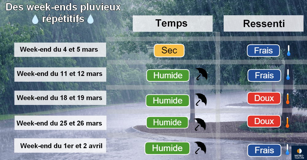 Des week-ends pluvieux répétitifs depuis le début du mois de mars 2023 - Météo Villes