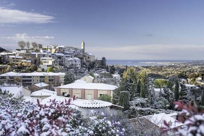 Saupoudrage de neige au matin du 2 avril 2022 à Aspremont (06) – Jérémie Gaillard
