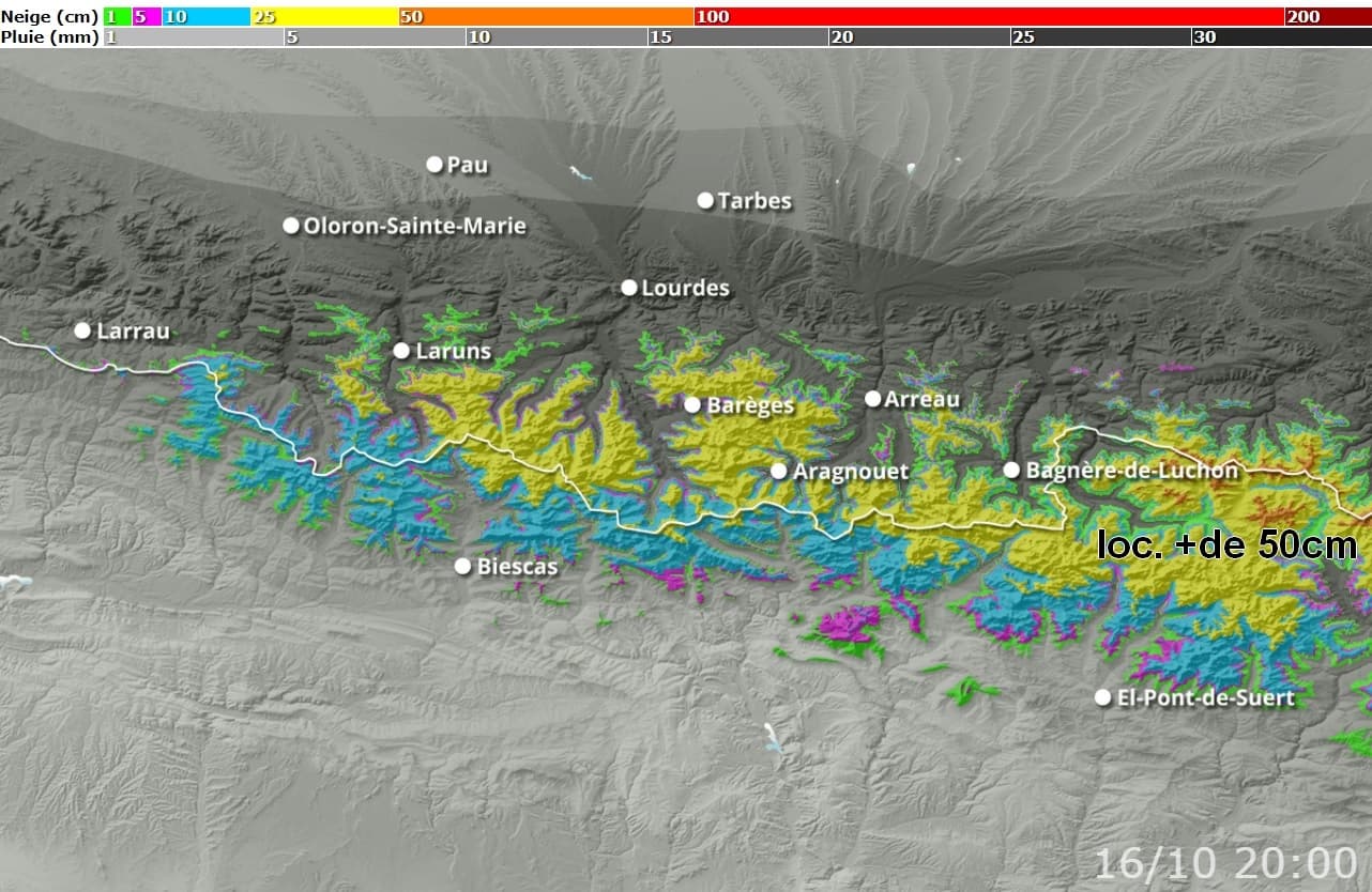 Cumuls de neige envisagés du 11 au 16 Octobre sur l'Ouest des Pyrénées - Via skipass