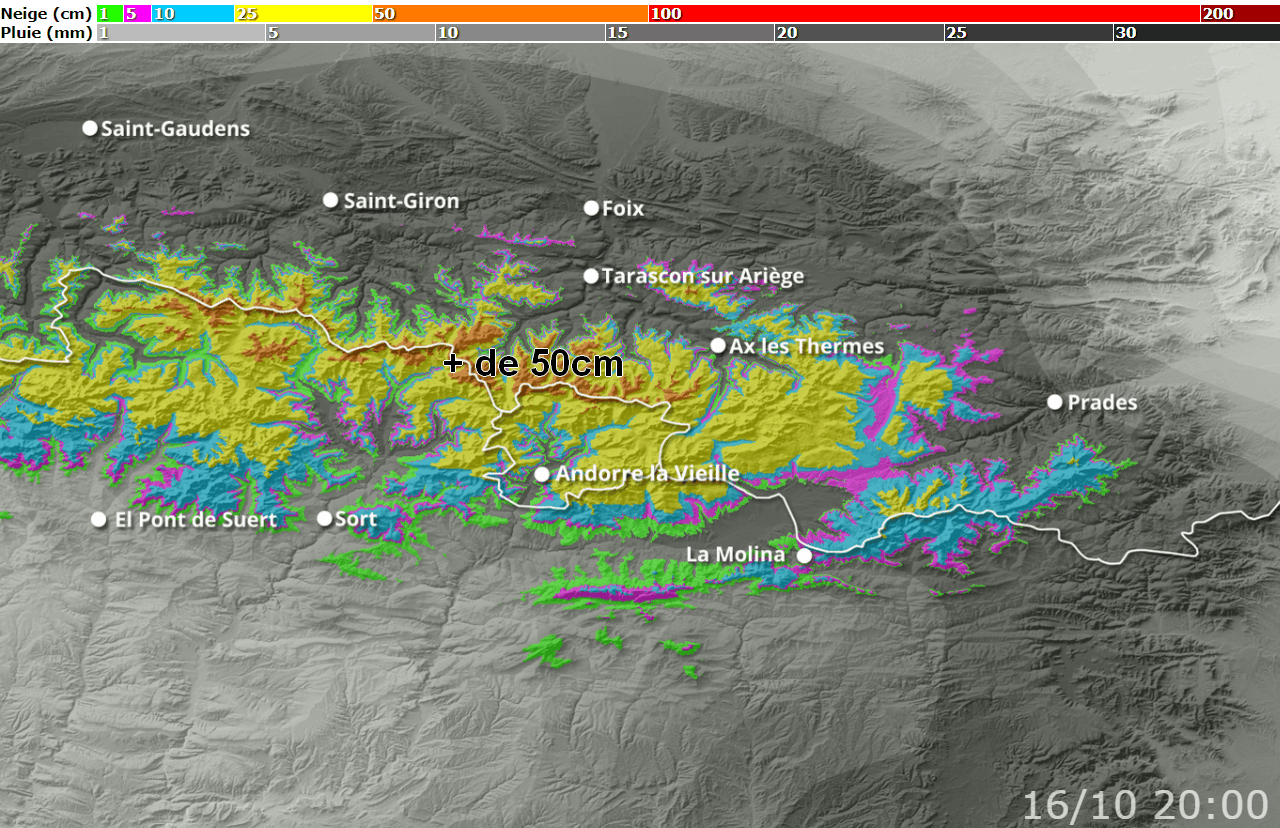 Cumuls de neige envisagés du 11 au 16 Octobre sur l'Est des Pyrénées - Via skipass