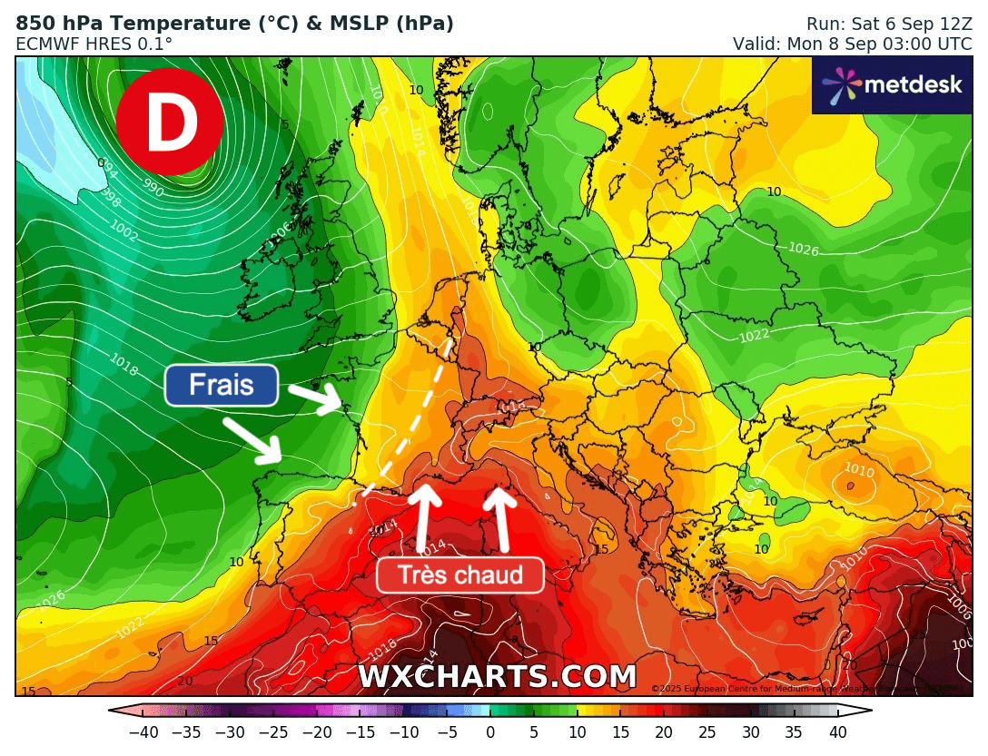 La différence de température entre l'ouest et le sud-est de la France sera assez marquée, avec une progression de l'air frais océanique qui finira par l'emporter.