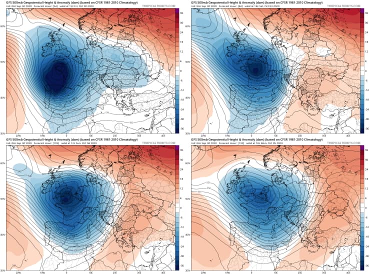Anomalies de géopotentiel du 2 au 5 octobre 2020 - via tropicaltidbits.com