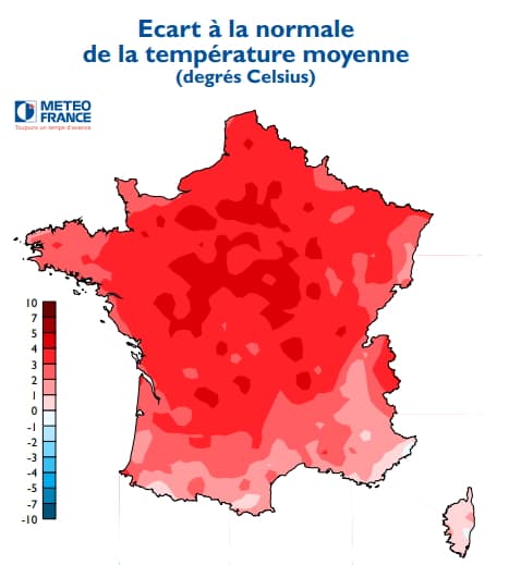 Les températures maximales avaient atteint et dépassé la barre des 25°C sur la quasi-totalité de la France, y compris jusqu'aux rivages de la Mer du Nord. Des records décadaires étaient tombés dans le centre du pays avec 29,5°C à Châteauroux, 29,4°C à Nevers ou encore 27,2°C à Paris-Montsouris.