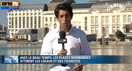 Thomas Misrachi (BFMTV) devant le casino de Deauville sous plus de 28°C !
