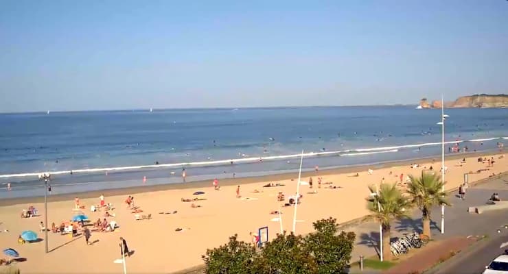 Baignade et bains de soleil sur la plage d'Hendaye le 11 octobre 2019 sous 29°C