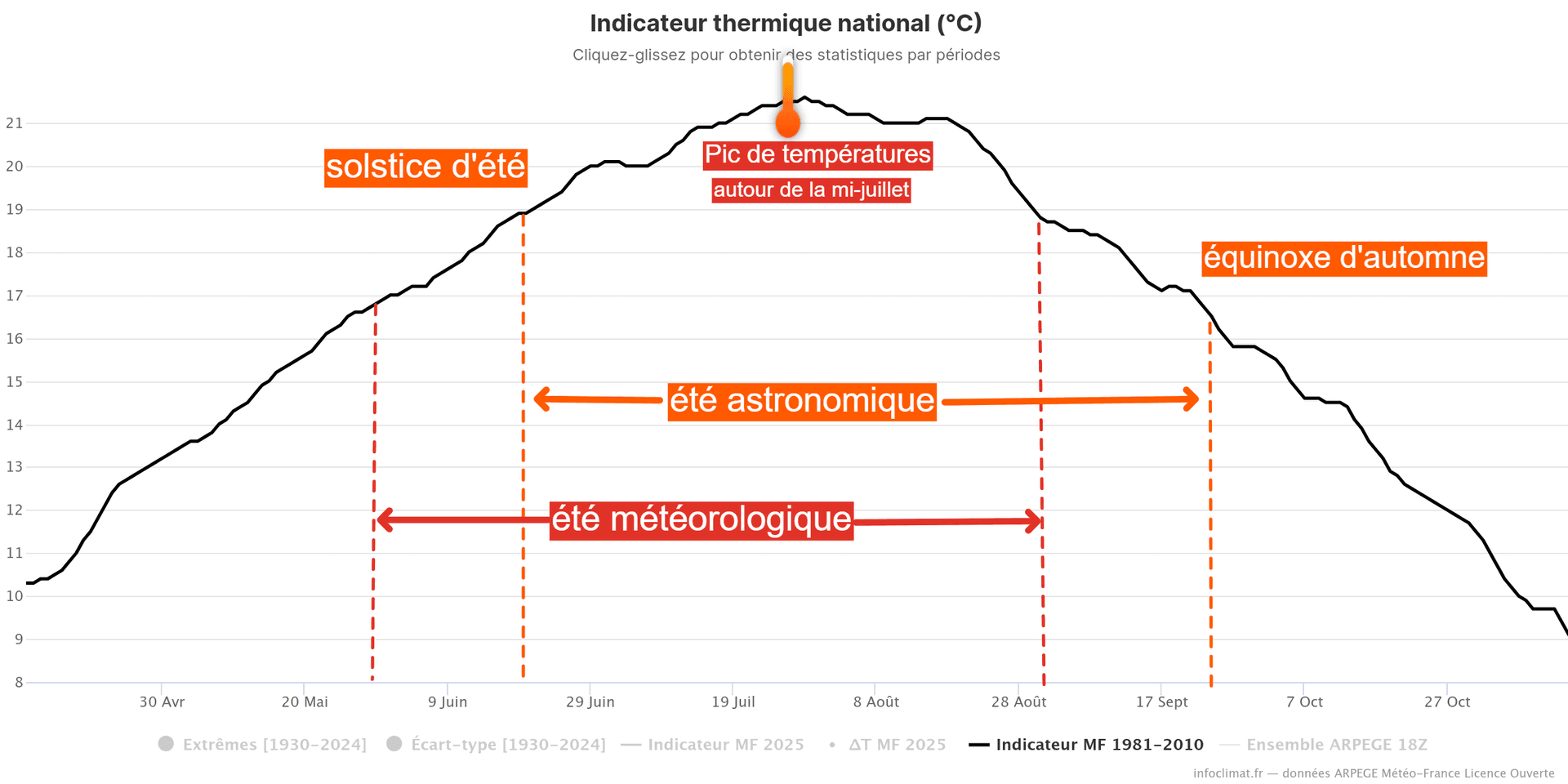 Évolution des températures moyennes en France entre avril et novembre - via infoclimat.fr