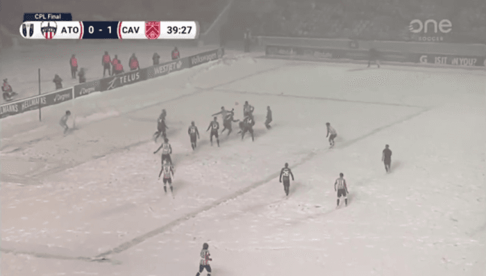 Le soir du dimanche 9 novembre 2025, le match de football du Canadian Premier League Final (CPL) entre l'Atlético Ottawa et Cavalry FC a fait beaucoup réagir au Canada comme à l'international. En effet, cette finale s'est déroulée sous une véritable tempête de neige, recouvrant totalement le terrain ! Le jeu a été interrompu toutes les 15 minutes pour tracer les lignes. Cela n'a pas empêché 30.000 personnes d'y assister, gelés dans les gradins.
