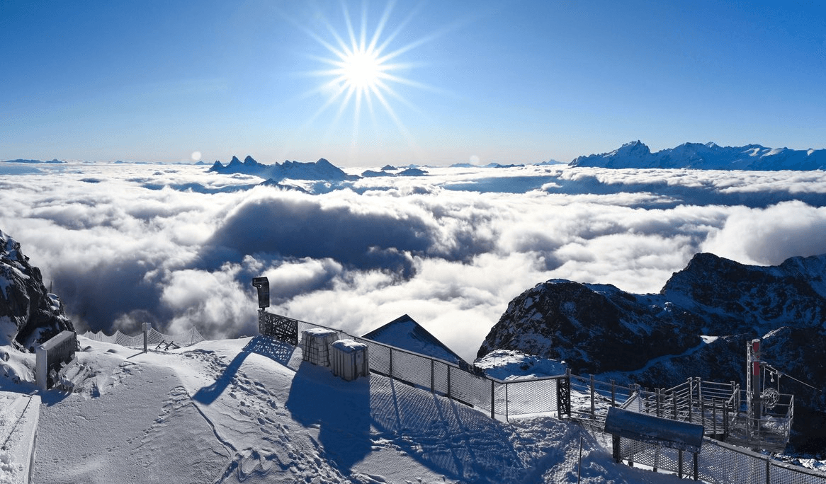 Lorsqu'une mer de nuages se forme, les sommets montagneux passent au dessus d'un "océan de nuages" - via Les Carroz