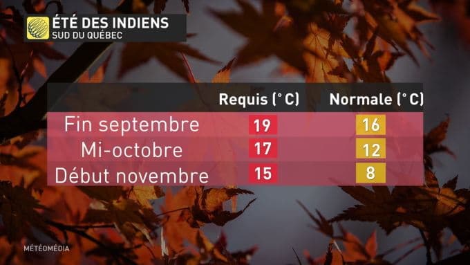 Températures requises pour parler d'été indien dans le sud du Québec - via Météo Média