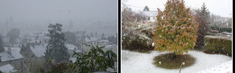 Neige à Blois (gauche) et dans le Loiret (droite) le 30 octobre 2008 - photos via infoclimat.fr