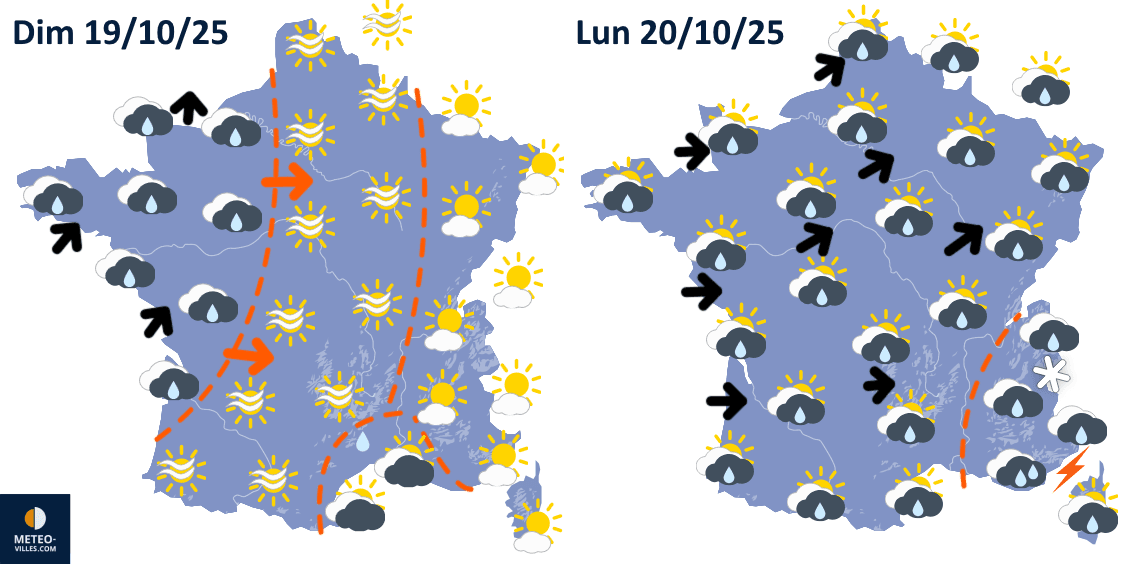 Prévisions météo pour les dimanche 19 et lundi 20 octobre 2025 - Météo Villes