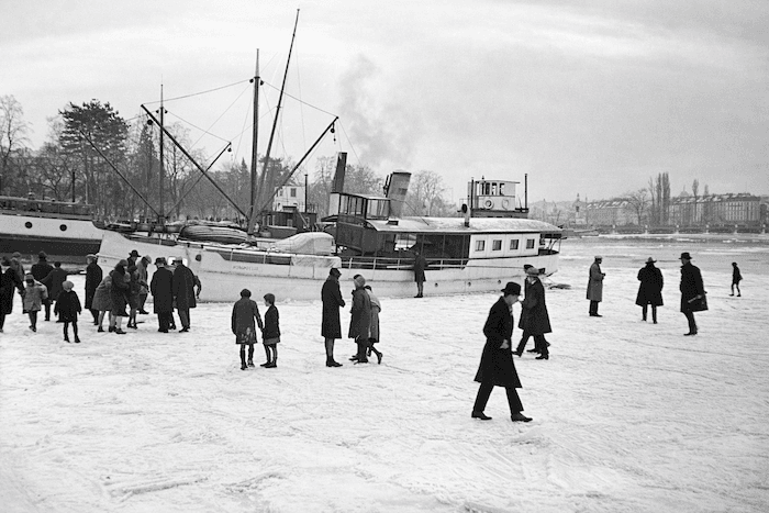 La rade de Genève prise par la glace lors de la vague de froid de février 1929 - Chronique Météo Villes