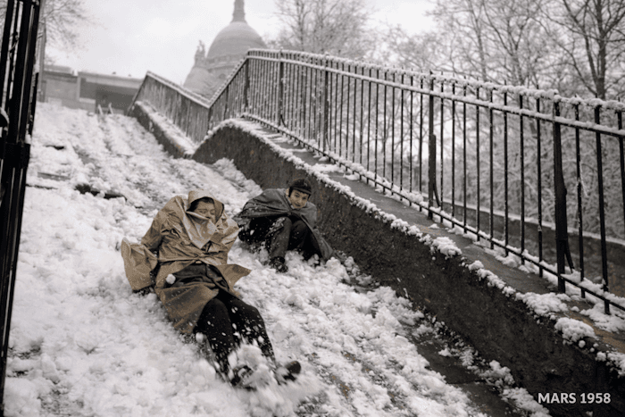 Les joies de la neige du 12 mars 1958 sur la Butte Montmartre à ParisChronique Météo Villes