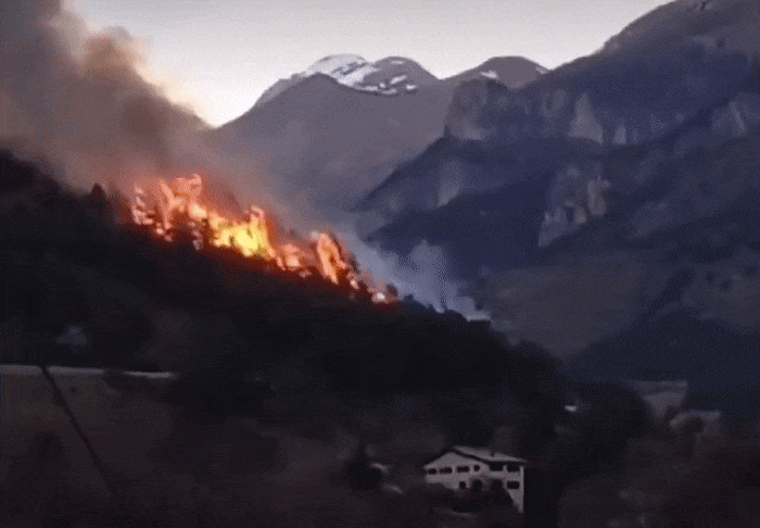 Incendie à Tende (06) le samedi 1er avril 2023 - vidéo Nathalie Deletang via Nice Météo