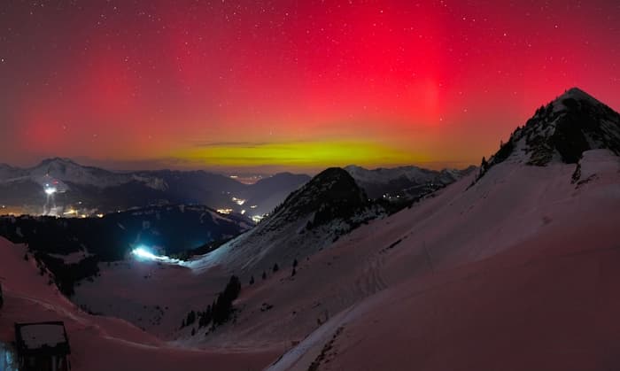 Aurores boréales depuis Morzine en Haute-Savoie en nuit du lundi 19 au mardi 20 janvier 2026 - Skaping