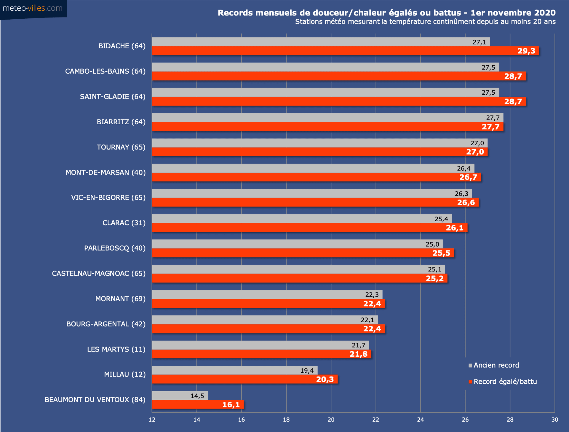 Records mensuels battus en journée du 1er Novembre - Météo-Villes