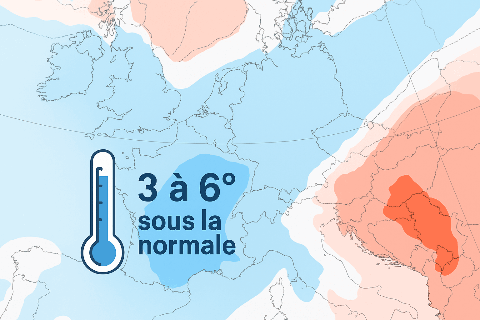 Tout au long de la semaine, l'indicateur thermique nationale sera largement inférieur aux normales avec un minimum d'environ 5°C en-dessous de la moyenne entre mercredi et jeudi.