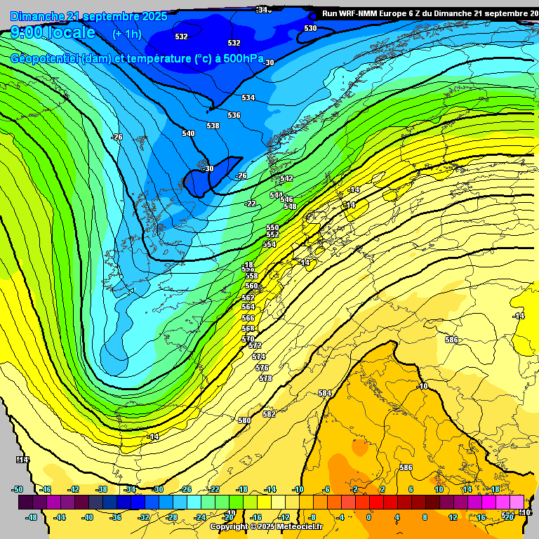 Évolution de la température 500 hPa jusqu'à vendredi 26 septembre - modèle Météo WRF - site METEOCIEL