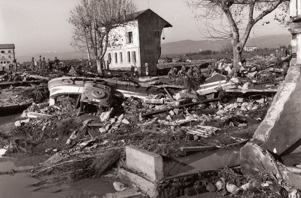 À l’aube, la vallée offre un spectacle de désolation. Boue, débris et silence pesant dominent un paysage bouleversé. Des familles entières disparues.