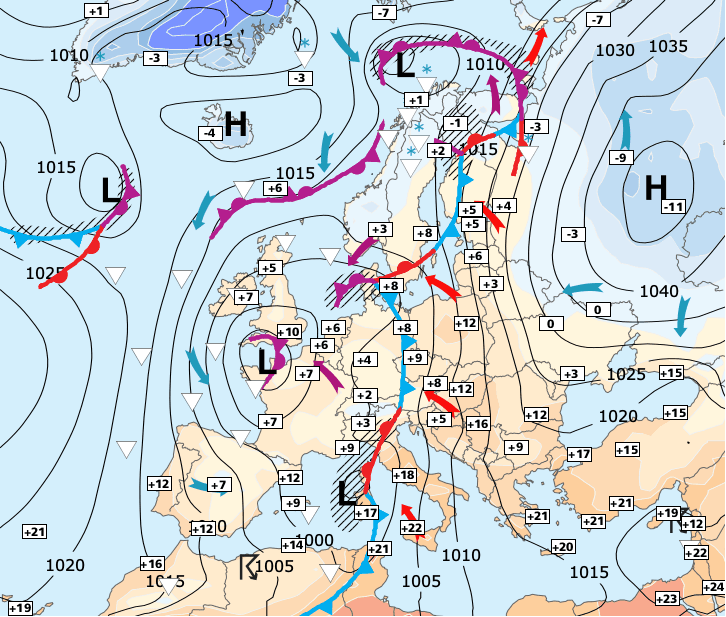 + Une autre dépression italienne engendrera des retours d’est avec de la neige fondante jusqu’en plaine dans le Nord-est entre dimanche soir et lundi matin.