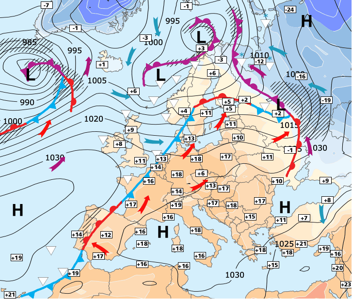 + Une petite goutte froide d’altitude survolera les régions du Nord puis du Centre et du sud-est dans la journée de vendredi.