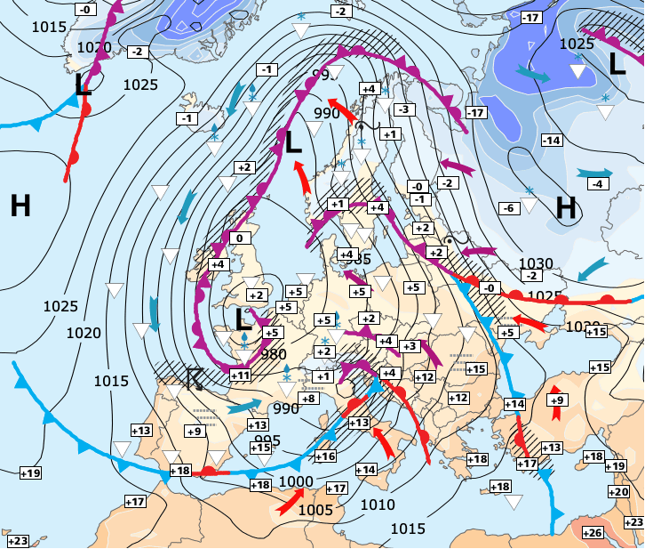 + Mardi, le centre de cette dépression se décalera vers Copenhague (Danemark).