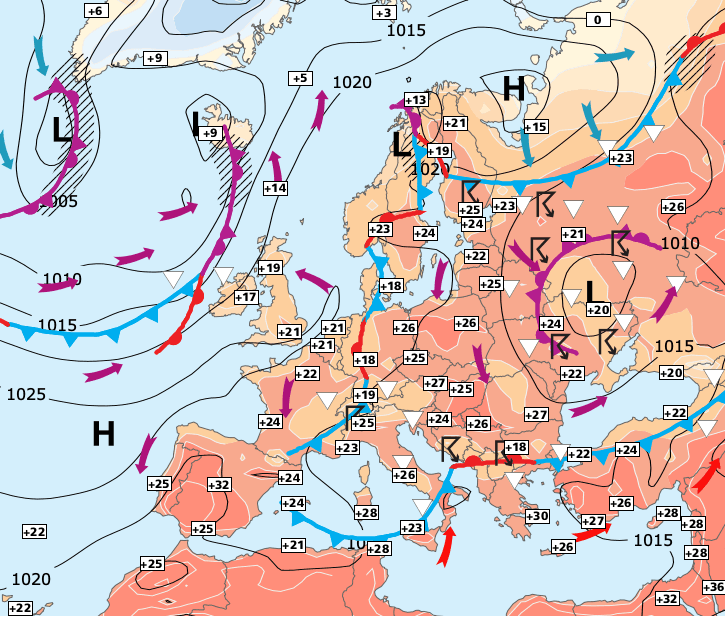 + A partir de dimanche, le centre de l’anticyclone se décalera vers les Pays-Bas et le soleil deviendra très généreux sur tout le pays - avec une chaleur devenant assez marquée dans le Sud-ouest.